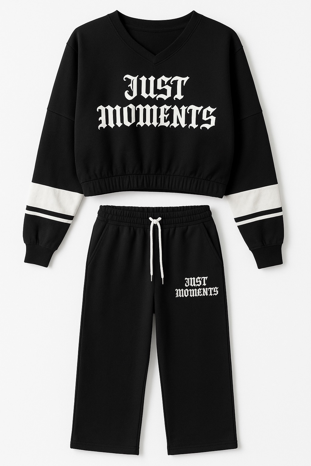 Acest trening est alegerea perfecta pentru fetele care iubessc stilul casual.confectionat dintr-un material moale si placut la atingere ofera libertaate de miscare si un aspect modern.Set format din 2 piese:bluza+pantaloni.Bluza fara fermoar,croiala lejera.Pantaloni cu talie elastica si snur reglabil.Material bumbac+poliester.Culoare:NEGRU..Marimi:M,S,L