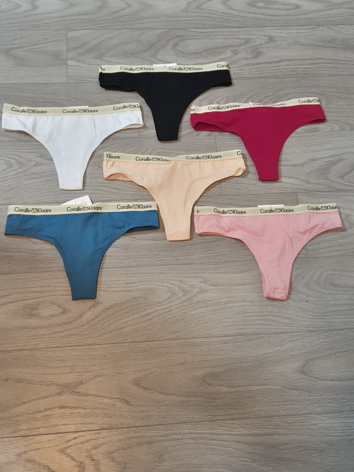 Setul contine 6 perechi de chiloti tanga cu desing modern,confectionati din materiale fine placute la atingere.Croiala tanga subtiaza frumos silueta,fara urme vizibile sub haine.Perfect pentru uz zilnic.SET 6 buc,Tip tanga,Material :bumbac 95%,elastan5% ,Elastic confortabil.